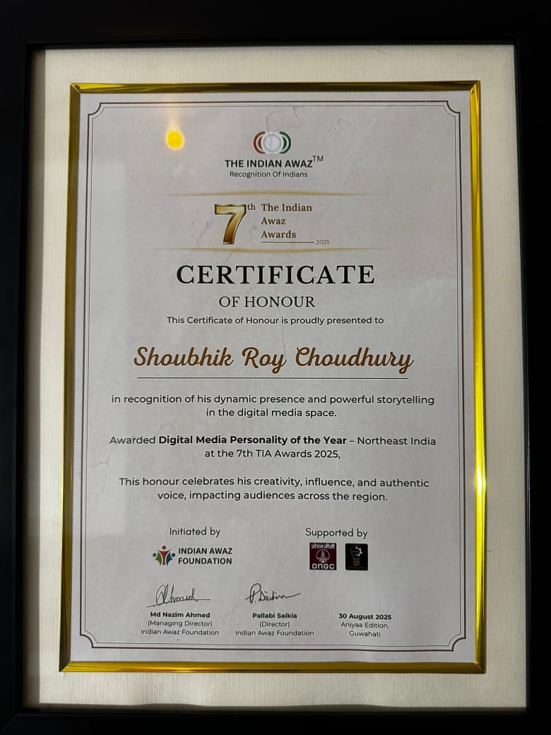 Mr. Shoubhik Roy Choudhury, alumnus of DPS Dhaligaon received the coveted award-DIGITAL MEDIA PERSONALITY OF THE YEAR: 2025-NORTHEAST INDIA at the 7th TIA Awards 2025 , an honour initiated by Indian Awaz Foundation for his creativity & authentic voice, impacting across the region. Many congratulations! Indeed, it’s a proud moment for all of us at DPS Dhaligaon.