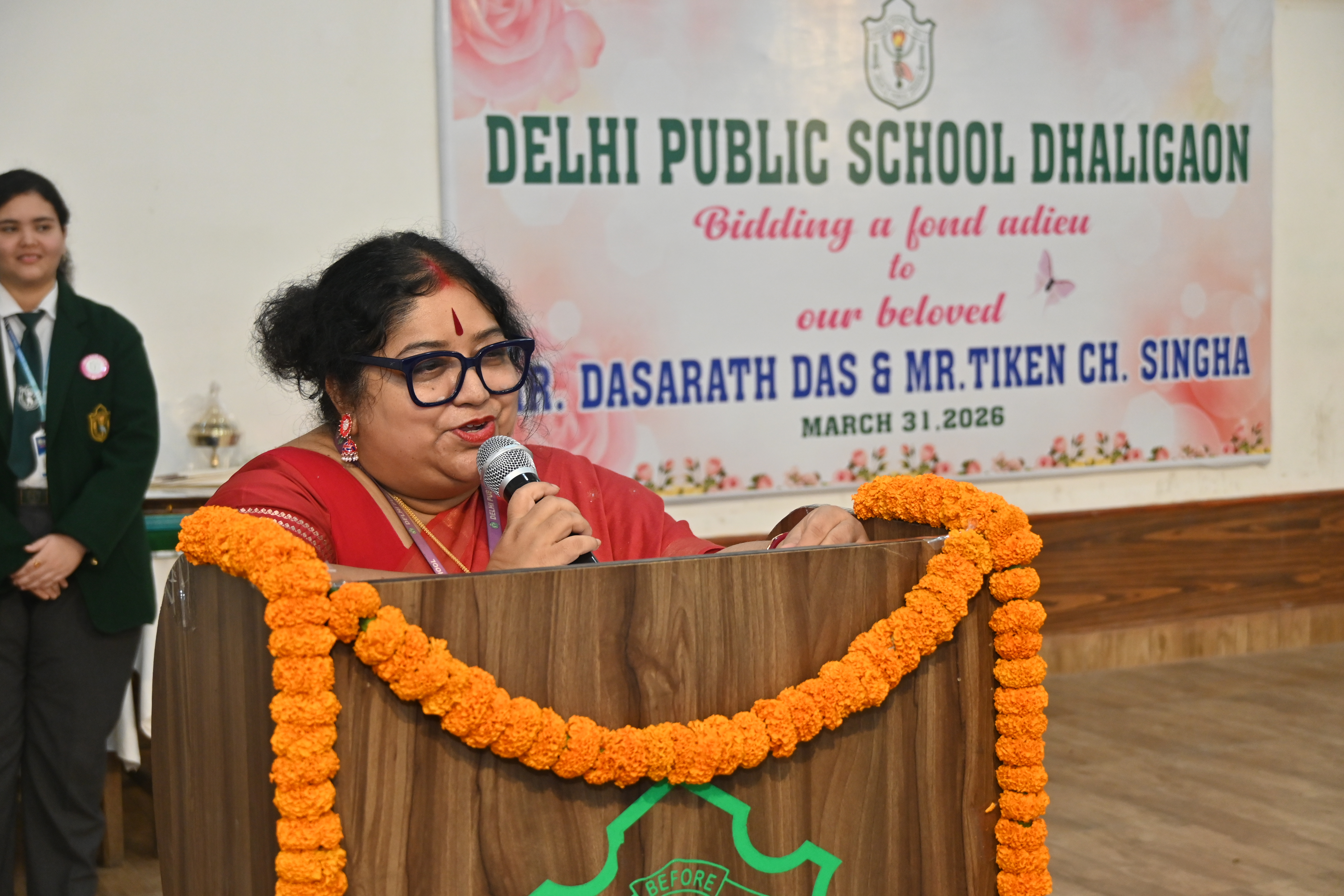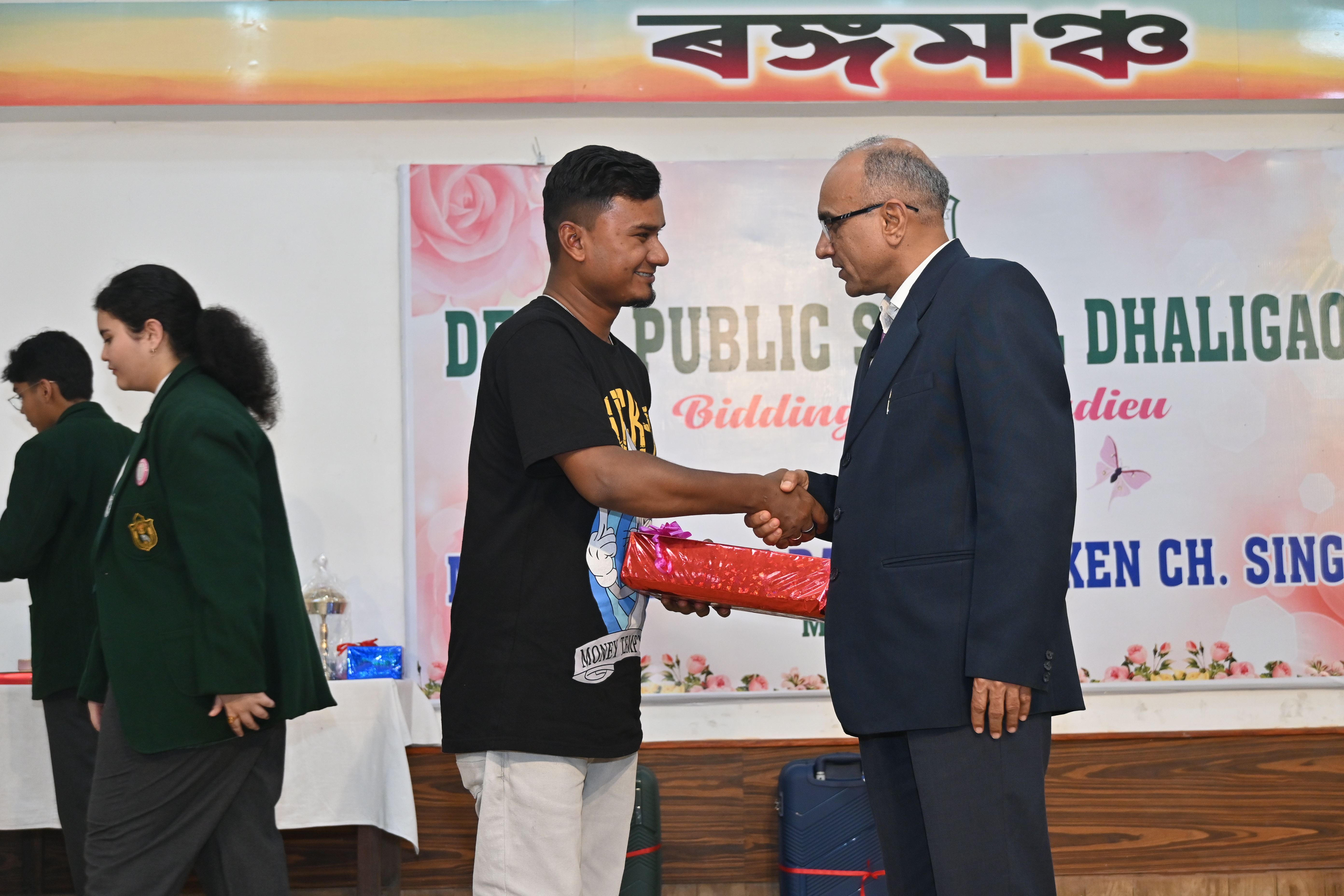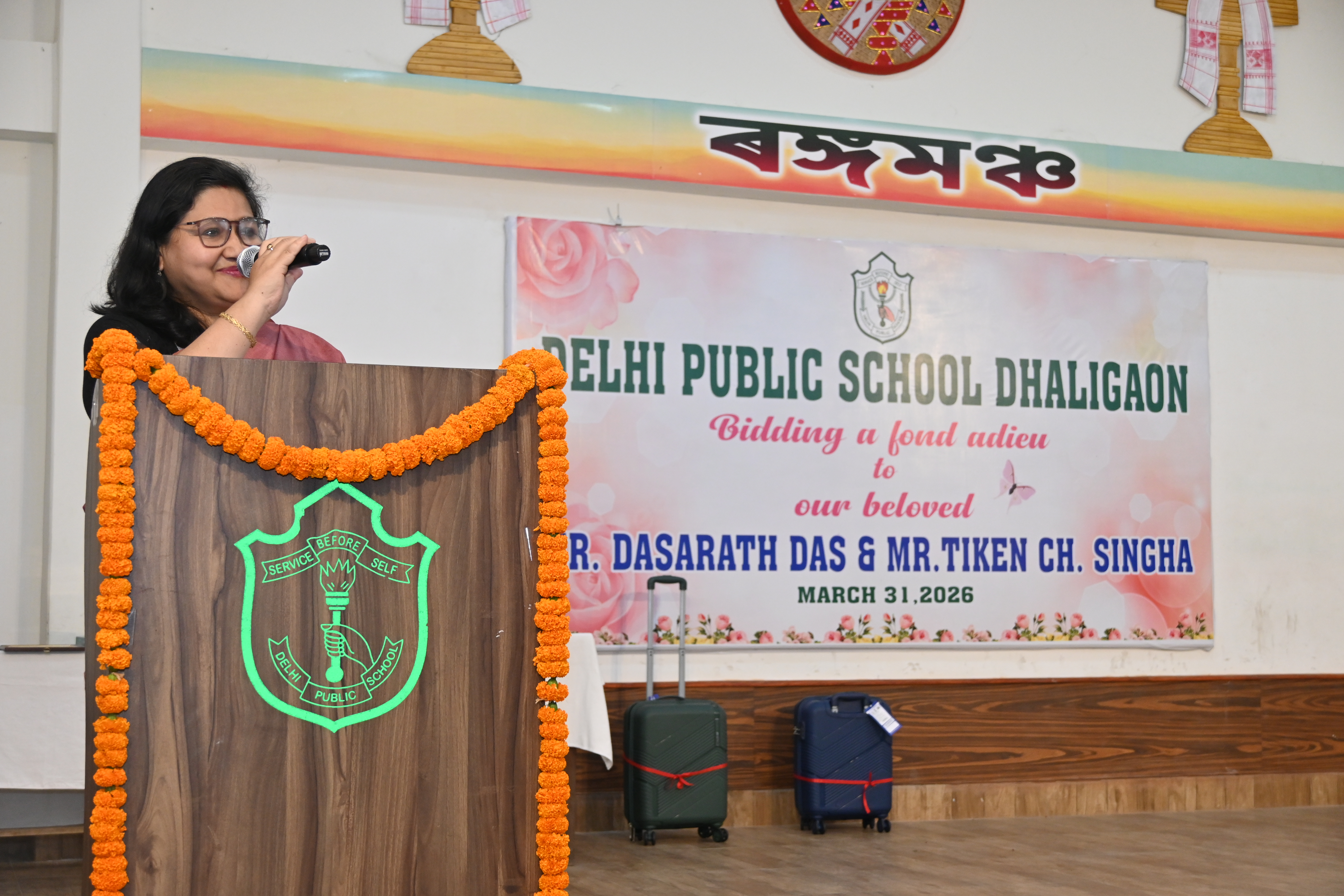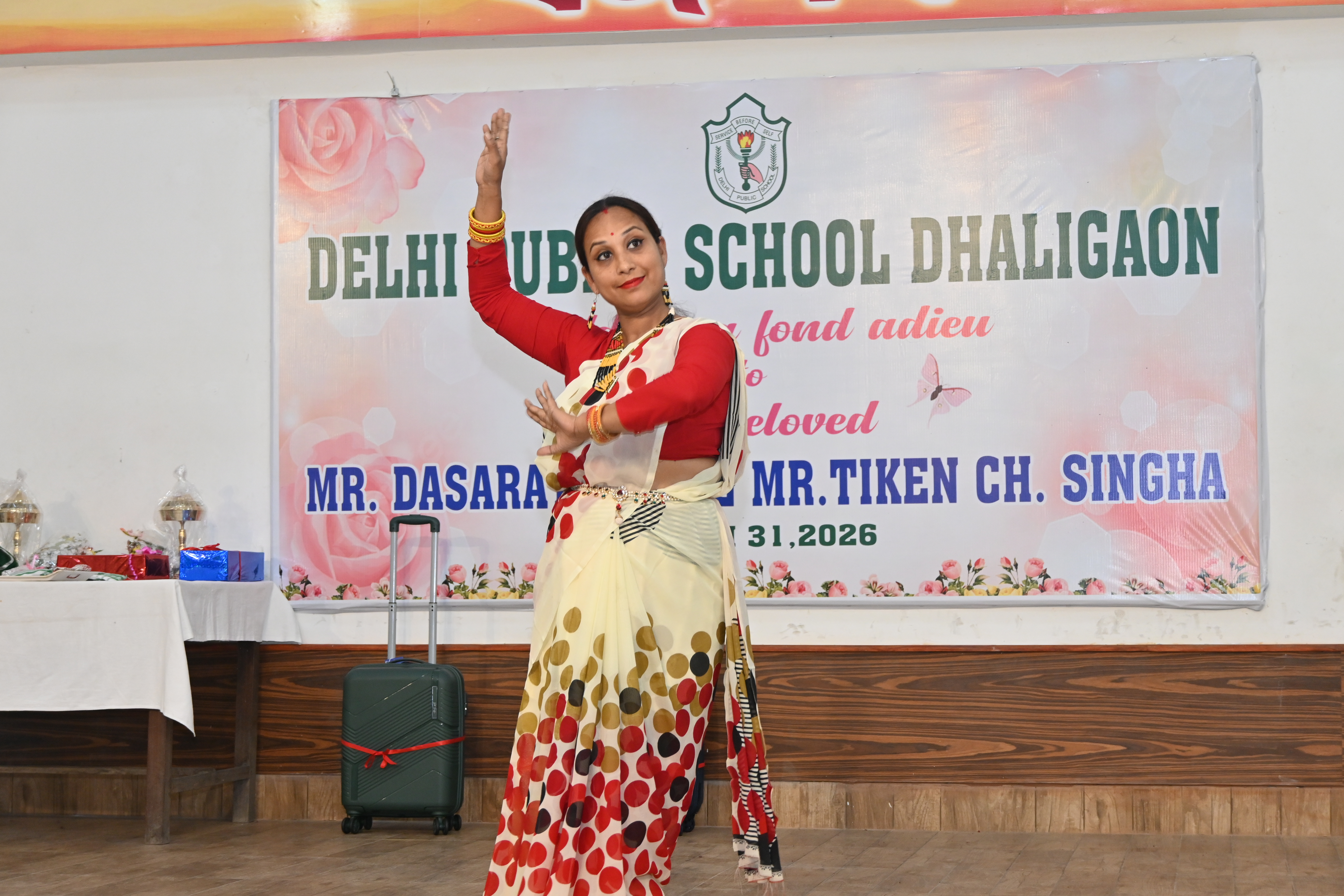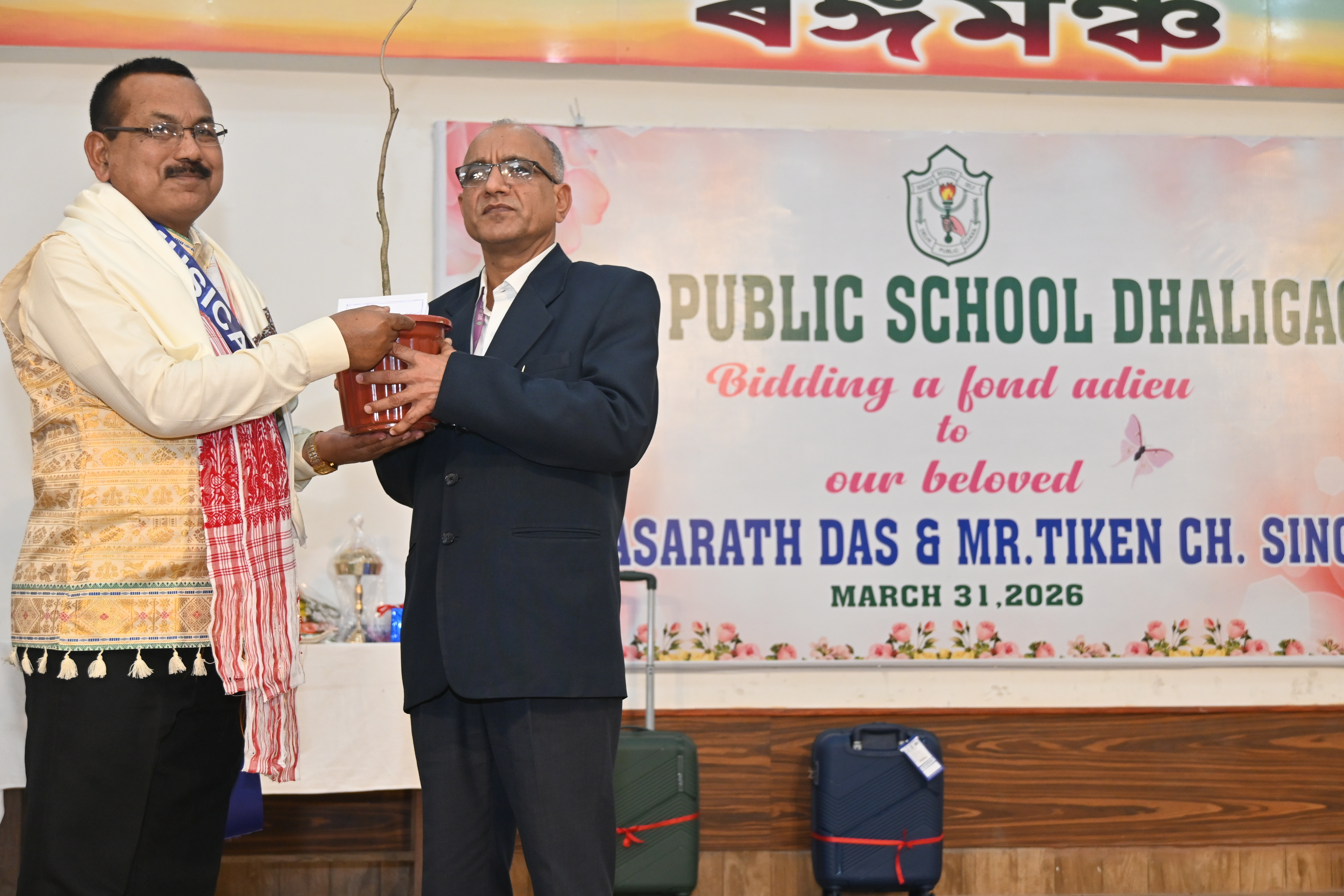 March 31,2026: The school organized a farewell ceremony on the superannuation of two of our staff members, Mr. Dasarath Das, teacher of Music and Mr. Tiken Ch.Singha, messenger of the school . In their honour, a cultural bouquet of programmes was offered by the teachers . Citaton & gifts were presented to them , in praise of them. In conclusion, the Principal , Dr. R.K.Mishra , in his address, appreciated the commitment and sincerity of the outgoing members of the school. Mr.D.Das also expressed his gratitude to the Principal for his support and encouragement. The farewell served as a beautiful reminder of the strong bonds shared within the DPS Dhaligaon family.