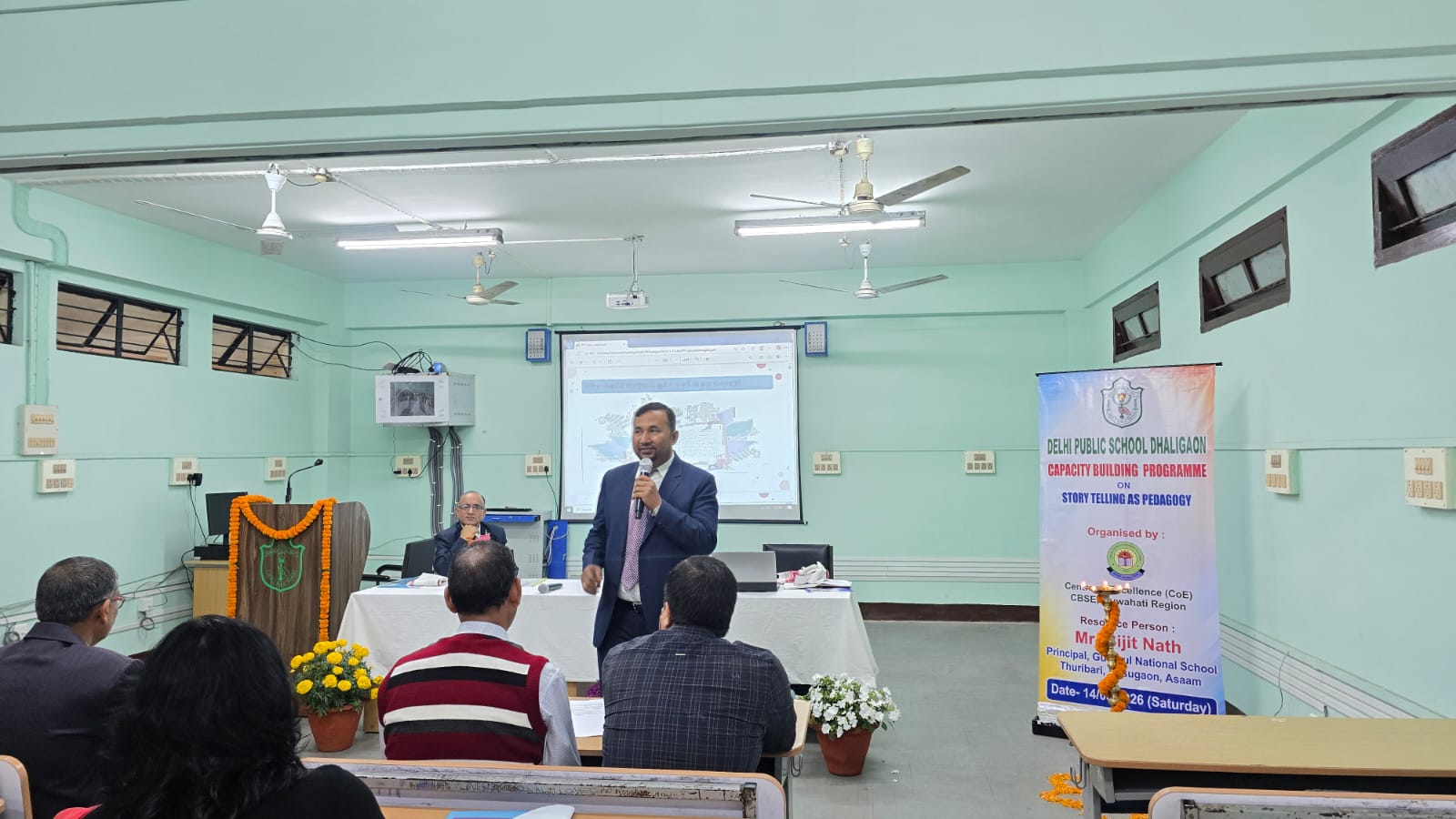 The school hosted a Capacity Building Programme on Story Telling As Pedagogy on March 14,2026 with Dr.R.K.Mishra, the Principal as the Venue Director. It was organised by the Centre of Excellence (CoE), CBSE Guwahati Region and the resource person was Mr.Bijit Nath, Principal, Gurukul National School, Basugaon, Assam . The pedagogy of Story Telling is preferred to be adopted in alignment with NEP 2020, making learning meaningful and engaging.